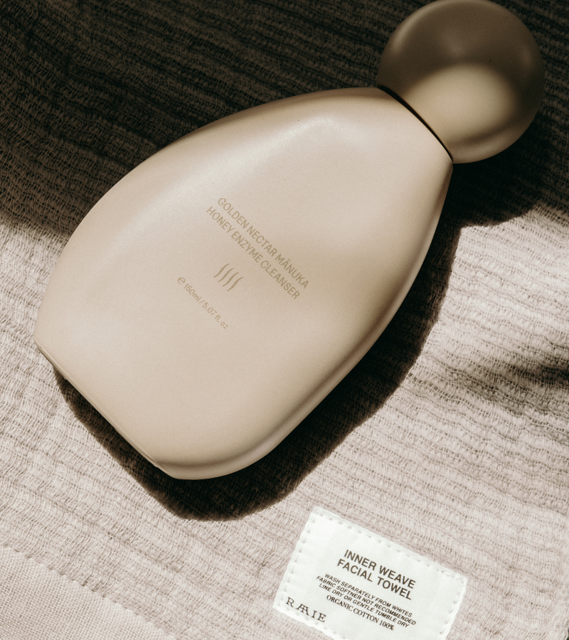 While cleansing marks the start and end of my day, both rituals serve a different purpose. In the morning I swear by the sweet scent of mānuka to awaken my senses and breathe life into my weary complexion – a slow massage followed by splashes of cold water at the sink and I’m ready to hit the pavement or pilates mat. My evening cleanse is the first step in a rather lengthy wind-down routine – almost always accompanied with a cup of tea and a dose of ashwagandha to calm the mind. I cleanse twice, once with vigour to remove the stresses (and SPF-induced sebum) of the day, and then again for my now-bare skin to reap the benefits of the cleanser – and the several layers of skincare that follow (there are many!).